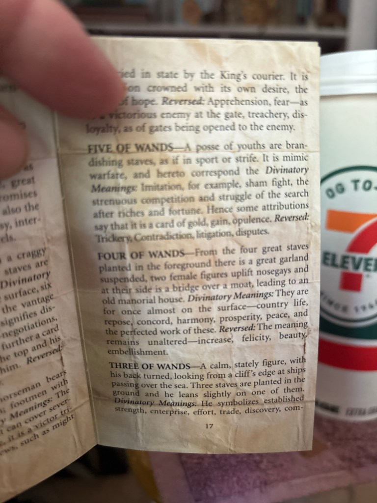I will accept it into the reading as it applies to my third card of the 5 of wands.
